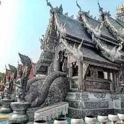 Inside the temple, there is the world's first Lanna-style silver chapel... There are 2 statues of Thao Wessuwan, the world's largest silver millionaire, for tourists to worship and ask for blessings.