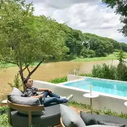 Little Shelter Hotel Chiang Mai Little Shelter Hotel is the ultimate design hotel with contemporary Lanna architecture that is full of charm and beauty. With an extraordinary design that comes with creativity and has received many design awards. The hotel is only 7 km from Chiang Mai Airport. This is a hotel, accommodation, cafe, restaurant and a beautiful riverside cocktail bar at night. Let me tell you that the food here is very delicious. There is a small swimming pool behind the hotel. The bed is also very good quality. I slept really well. It is considered another interesting option.