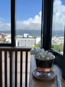 The shop has both outdoor and indoor areas. The area is not very large, but it is very well decorated. When the sky is clear, we can see Doi Suthep from the shop. The same goes for airplanes. Fluffy clouds, cool breeze, a good cup of coffee is the most suitable. ☕️🥰