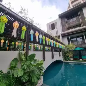 Maladee Rendezvous Hotel Chiang Mai is a beautiful loft-style accommodation decorated in a retro style that is currently popular for those who like to chill. With unique decorations, attention to detail, very good design, from stepping into the reception to the room, perfect functions, no flaws. Small details make your stay smooth. The room is beautiful and spacious, the bedroom is clean, the bed is soft and comfortable to sleep on, the bathroom is separated and has complete amenities, a hot water heater that comes quickly, the water pressure is very satisfying. There is welcome fruit in the room and a free mini bar. There will be beer, fruit juice and baked beans, full at no additional cost. Breakfast is a buffet a la carte, focusing on fresh cooking, with a variety of menus. There is a menu to order, but there is a variety. The coffee is good, delicious, strong. The swimming pool has a beautiful view of the swimming pool. There are many corners for taking pictures. It is clean and looks new. There is a warm water pool in the middle of the circle for relaxing. The large pool is very beautiful. There is a bridge in the middle, which is a good idea. The location is close to the center of Chiang Mai. It is convenient to travel, near tourist attractions, near the market, everything is convenient. If you don't want to miss a beautiful hotel like this, If you come to visit Chiang Mai, you must try this.