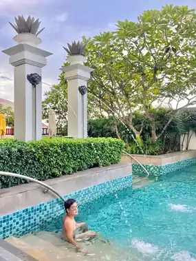 The swimming pool has a great view. You can see Doi Suthep and there is a bar where you can order light snacks and cocktails. The service is available all day long.