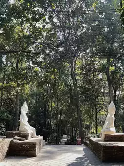 Experience the tranquility in the middle of the big city at Wat Umong (Suan Phuttharam). The temple is located in Chiang Mai city, not far from the foot of Doi Suthep, behind Chiang Mai University. There is a tunnel under the 700-year-old pagoda. You can take off your shoes and walk in. The inside is cool like it has air conditioning, but in reality, it is pure nature. There is dim light. There are Buddha statues to worship at intervals. It is unusual and cannot be found in general temples. There are Buddhist teachings along the trees along the way. It is worth visiting and worshiping the Buddha.