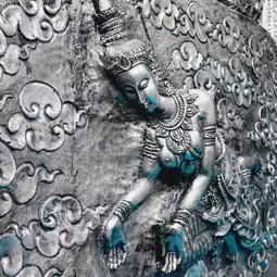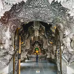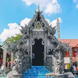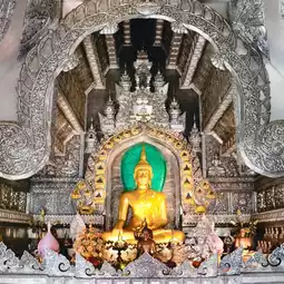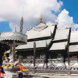 🙏The Silver Ubosot is designed in the Lanna style, made of silver and tin metal by local craftsmen who specialize in silverware. Both the interior and exterior of the Ubosot are decorated with silverware with graceful patterns. Inside, there is a principal Buddha image, which the locals call Phra Chao Chet Tue, a Buddha image in the Mara-Vijaya attitude, made of bronze. The temple strictly prohibits women from entering the Silver Ubosot, as sacred objects, valuables, spells, and amulets more than 500 years old are buried under the base of the Ubosot.
