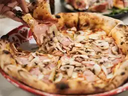 🫓The main menu is homemade pizza that uses wood to bake in a large oven that stands out since the door of the shop was opened. The pizza that is baked in a wood oven gives it a unique smell. The pizza dough is thin but soft. There are many toppings to choose from.