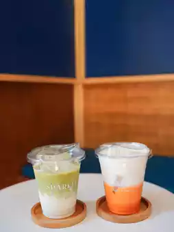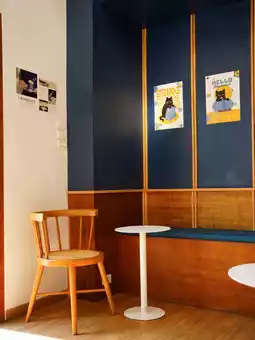 ☕️ Sparkle coffee & bakery cafe is decorated in blue tones with wood colors, good atmosphere, very cozy