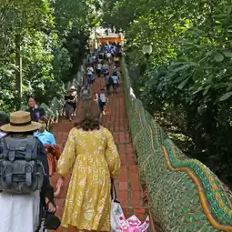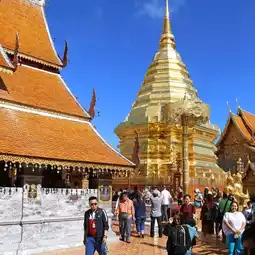 Doi Suthep Temple, located near Chiang Mai in Thailand, is a revered Buddhist site perched atop Doi Suthep mountain. It is renowned for its stunning architecture, including a golden chedi that dominates the skyline. Legend has it that the temple was founded in 1383 after a monk found a relic believed to be a shoulder bone of the Buddha. Visitors climb the 300 steps of the Naga staircase, flanked by intricately carved serpents, to reach the temple complex. Apart from its religious significance, Doi Suthep offers breathtaking panoramic views of Chiang Mai and is a popular destination for both tourists and pilgrims.