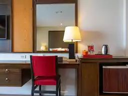 The rooms here come with complete facilities. The common area has a fitness center, swimming pool, and poolside bar. There are also many restaurants located in the hotel area. Today, we ate at "𝘞𝘪𝘯𝘦 & 𝘍𝘰𝘰𝘥 𝘛𝘦𝘳𝘳𝘢𝘤𝘦". It serves both Thai and international food. There is quite a variety of food. Anyone who is a chill person who likes to sip drinks must not miss this place. And don't miss the "Chocolate Hour". For those with a sweet tooth, book the time slot from 4:00 PM to 5:00 PM.