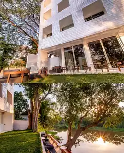 The Little Shelter Hotel is built on the banks of the Ping River in the suburbs, a glowing building standing in the midst of green fields, very much in keeping with its name 'shelter'.
