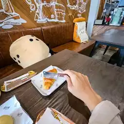 There are many drinks and pastries to choose from. The pastries in the shop are freshly baked, so they smell very good.