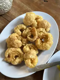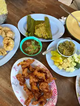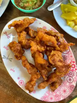 Ancient Fried Pork Shop in Chiang Mai Province - A northern restaurant with a homey atmosphere, like eating in a countryside home. The food is not too spicy. The taste is suitable for all ages. We recommend the ancient fried pork menu. The shop fries it fresh. Eat it with hot sticky rice, very delicious. If anyone has time, don't forget to order this menu.
