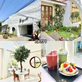 This is a coffee shop and restaurant on the side of the road with a very inviting atmosphere. The shop is decorated in a minimalist style, with a comfortable white tone. Looking out, you can see the view of Doi Luang Chiang Dao⛰️