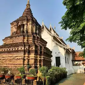 Wat Jed Lin, also known as Wat Nong Chorin, is an ancient temple of great importance in Chiang Mai, located in the heart of the city. The temple's architecture is beautifully designed in the Lanna style, offering a serene and shady atmosphere. This temple is over 500 years old, making it a historical site that has been a part of Chiang Mai's history for a long time. It is believed to have been built in 2060 BE during the reign of King Mengrai, or King Lokapannada, as archaeological excavations by the Fine Arts Department have revealed. Within the temple grounds, there are chedis, viharas, and buildings connected to the viharas, although some are in ruins. The more intact parts include the base of the chedi and the principal Buddha image (originally only a large plaster head was found behind the vihara). Behind the vihara, there is a chedi with a mixture of a square base and a circular body, influenced by Sukhothai, with Buddha niches in all four directions, dating back to the reign of King Tilokaraj, which is a chedi style built during the time of Phraya Yod Chiang Rai, Phraya Mengrai, or thereafter.