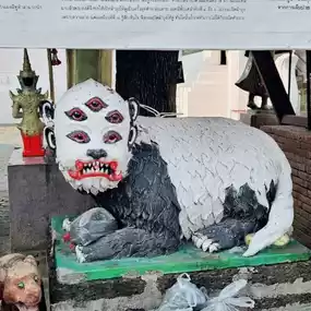 Important things to see and pay respects to for blessings in life include the Lanna-style vihara housing the victorious Buddha image, Luang Por Phra Chao Tan Jai, a revered Lanna-style Buddha image known for granting wishes promptly to all who pray there. Also, there are statues of monks and the legendary Lanna creature with four ears and five eyes, which eats red-hot coals and excretes gold, symbolizing Buddhist principles, including the four Brahmaviharas and the five precepts.