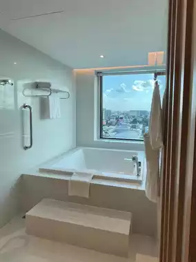 The swimming pool has a beautiful and very large view. In the morning, I stopped by to take pictures. The staff who take care of the pool and the gym are friendly and helpful.