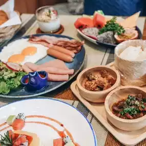 ในส่วนของบาร์ตกแต่สไตล์คลาสสิคผสมผสานความพื้นเมืองเข้าไป ทำให้มู๊ดและโทนของบรรยากาศดีมากๆ 🍷🍾🥂🍺🍹  ในส่วนของอาหารเช้าก็ทำออกมาได้ดีมาก มีอาหารให้เลือกหลากหลาย ปรุงจานต่อจาน แถมสั่งได้ไม่อั้น 😋🥪🍔🍜🍱