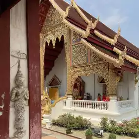 It is an ancient temple of Chiang Mai Province with unique and beautiful Lanna art sculptures. It has also been a center of faith for Chiang Mai people for a long time. Inside, there are Phra Buddha Sihing and Phra Si Sanphet.