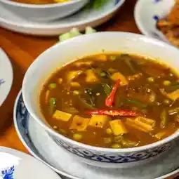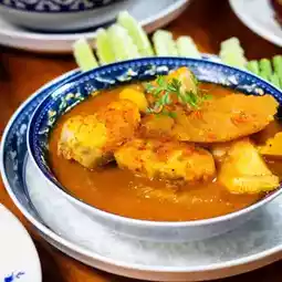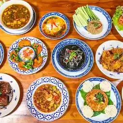 ✅ The food is served in large quantities. The original spicy taste. If you don't eat very spicy, you can ask the restaurant to reduce the spiciness. Example menus include crab meat curry, stir-fried stink beans with shrimp paste, stir-fried morning glory with eggs, yellow papaya curry with sea bass, royal pomelo salad, fish entrail curry, minced pork with salted fish, Phuket fish cakes, squid boiled in black water, and more.