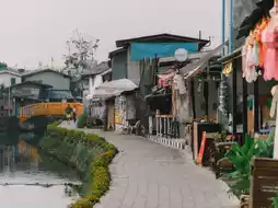 Both sides of the canal look quiet because the shops are not open yet