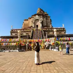 The site also hosts the "Sai Khan Dok Bucha Wes Inthakhil" festival, where the beautiful Inthakhil pillar, located next to the Chedi Luang, is worshipped. During the festival, people place flowers in a tray to worship the Inthakhil pillar, praying for the city's protection from disasters and honoring their ancestors.