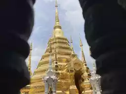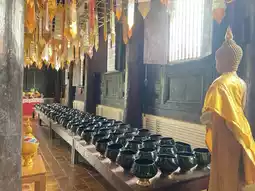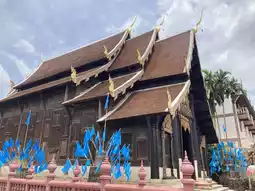 Chiang Mai is a very attractive city for tourists because it offers a variety of attractions. Today, we will focus on cultural tourism. One of the highlights of Chiang Mai is its temples. In the heart of the city, there are many temples, and we will visit one that is both beautiful and unique, providing a peaceful experience. This is 'Wat Phan Tao,' also known as Wat Pantao. The unique feature of this temple is its ordination hall, which is entirely made of teak wood in the Lanna architectural style. It stands out beautifully and catches the eye of passersby on the street in front of the temple. Visitors can admire its beauty, pay respects, make merit, or simply sit and find peace. It is one of the temples that will leave you feeling very relaxed after your visit.