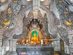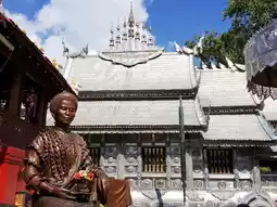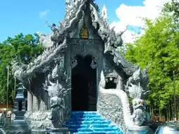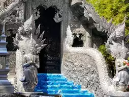This temple is another temple in Chiang Mai. There is a white church made of silver metal, probably aluminum. Women are not allowed to enter inside.🤔