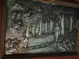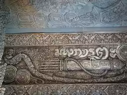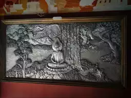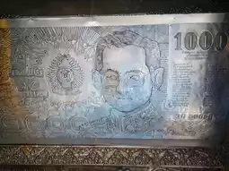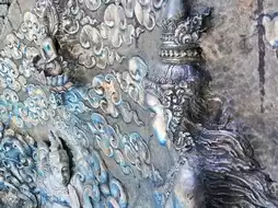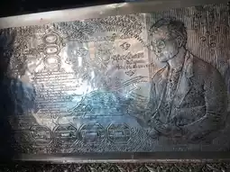 Inside, there are bas-relief sculptures carved on aluminum. There are stories of the Three Kingdoms, a thousand-baht banknote from the reign of King Rama IX, and others. You have to go in and see for yourself.