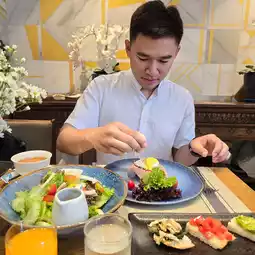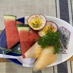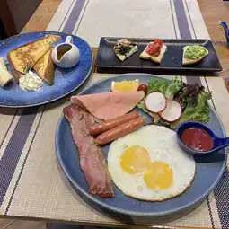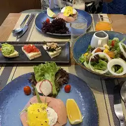 The breakfast at this hotel is very good. Normally, hotels are buffet style. We can choose to eat as we like. But here, it is a la carte. We order from the staff, plate by plate, without any time limit. I like it because it is like we are eating fresh food all the time.
