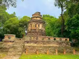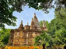 🛕Wat Ched Yod, also known as Wat Photharam Maha Vihara, is an ancient temple over 500 years old. It is a significant temple for those born in the Year of the Snake, as they must come to pay homage here. The temple's main structure, the Phothiballangk Vihara Maha Bodhi Chedi, resembles the seven-spired pagoda, which is the main building of the temple. It is located in Chiang Mai, Thailand.