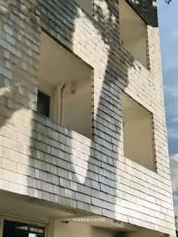 The front of the building is designed with polycarbonate sheets, cut into small square pieces, arranged together, striking in its simple and unusual appearance.