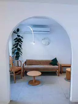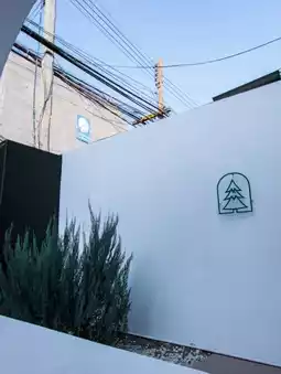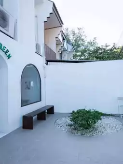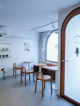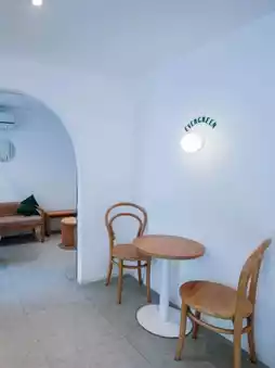 A minimalist style cafe decorated in white tones that give it a minimalist feel, and there are also hotel accommodations upstairs, with only a few rooms.