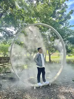 The outdoor area is comfortable to sit and enjoy the rose garden and the lake. The atmosphere is great. It is especially great in winter. It is perfect for relaxing and taking cool photos.