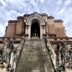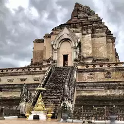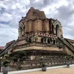 Wat Chedi Luang (Wat Chedi Luang Worawihan) is located in Chiang Mai city. It is one of the oldest and most important temples in Chiang Mai. It was built during the reign of King Saen Mueang Ma (1913-1945), and the Chedi Luang was over 80 meters high. It was considered an important religious center in the past and was the repository of the Emerald Buddha for a period of time.