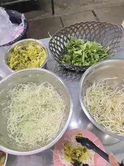 ✅ There are both Khanom Jeen, Khao Soi Gai, Khao Ngiao. There are soups to choose from: Nam Ngiao, Nam Ya Kati, Green Curry Chicken, Red Curry Pork, Red Curry Beef. There are free drinks and self-service. Don't forget to add a pickled egg. It's more delicious.