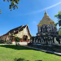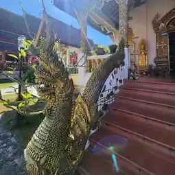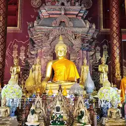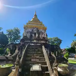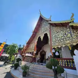 ✨️ Currently, it is a center for the study and dissemination of Buddhism, as well as a place to store important antiques in the history of Chiang Mai. Inside the temple, there are many important places, such as the Elephant Surrounded Chedi, a Lanna-style main chedi built in 1840, the Ho Trai Klang Nam for storing the Tripitaka and various scriptures, and the Royal Wihan or Ubosot, built in the present era. There are gold-painted murals on the red walls, telling the story of the creation of the city and temples in both Wiang Kum Kam and Chiang Mai by King Mengrai.