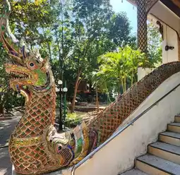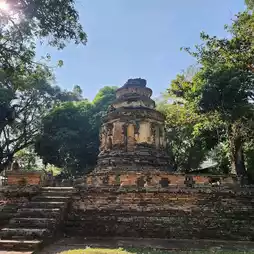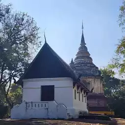 ✨️ The base of the stupa is decorated with stucco patterns of deities and angels. The outside is decorated with figures of angels sitting cross-legged and standing in royal attire. This temple also has important ancient sites such as the Chedi of Phra Chao Tilokarat, the pavilion, and other ancient stupas.