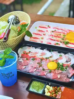 👍 River Bar is a restaurant and bar with a relaxing atmosphere on the banks of the Chao Phraya River. This restaurant is famous for its beautiful view of the Sanghi Bridge and its chill atmosphere. It is suitable for relaxing, enjoying live music, or hanging out with friends. The food here is also quite delicious. There are both Thai and international dishes to choose from. If you are looking for a place to chill by the river, we recommend you to stop by River Bar.