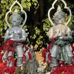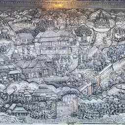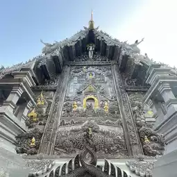 That's not all, there is also a museum here. Wisdom of the Ten Lanna Craftsmen The history of the Ten Craftsmen is inside the wooden building next to the Silver Ubosot, such as metal pattern craftsmen, carvers, umbrella craftsmen, so-tung craftsmen, etc. It is suitable for bringing the family to make merit, feel full of joy, and spend a holiday enjoying the knowledge in the Buddhist temple. The atmosphere of the cool breeze is great, especially in the morning when the warm sunlight reflects on the silver of the Ubosot, which is very pleasing. Seriously… walking around the entire temple, including the activities of paying homage to the Buddha, the gods, and various sacred objects in the temple, is very enjoyable. But if you come to the Wat Kad Wathanatham, where there are stalls, it is even more fun with food, including silverware, and Lanna lacquerware for sale, which will make you happy. #Wat Sri Suphan #Chiang Mai #Wua Lai #Enjoy Wood Life Wat Sri Suphan