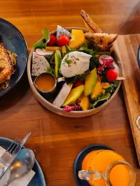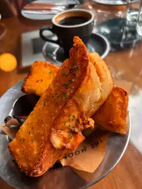 MOON cafe & eatery is a breakfast restaurant that you can eat all day. The atmosphere of the shop is spacious and comfortable. I like that the shop has breakfast that opens very early. Everything is delicious. The restaurant serves breakfast. All day breakfast and all day brunch. The shop is beautiful. There are large glass windows. There are many seating areas. There is also outdoor seating. There are a lot of food menus. The portions are much larger than you think. This place is also famous for homemade bread that is served as a set to eat with various breakfast sets such as brioche and sourdough. The taste is quite complete with additional sauces. Overall, it is delicious and well-presented. Anyone who is in Chiang Mai or traveling, stop by and eat.