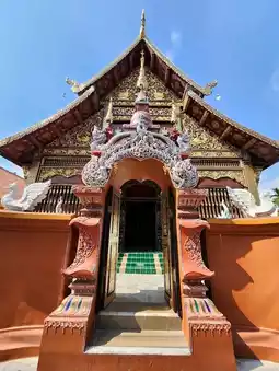 I'd like to introduce you to the temple closest to Tha Pae Gate, located along the moat in the old town of Chiang Mai.