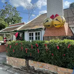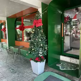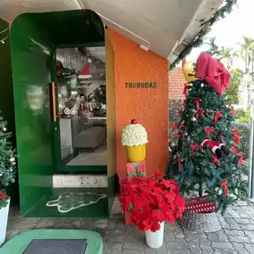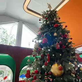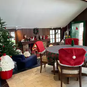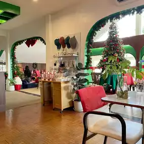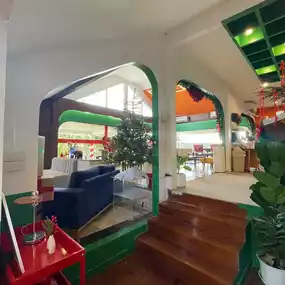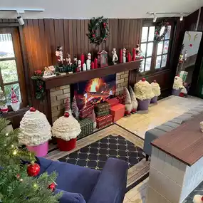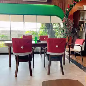 Atmosphere/Location - Decorated according to the December theme, Christmas theme, cute like being in Santa's house. The atmosphere is comfortable, the tables are far apart, comfortable to sit.