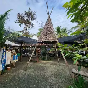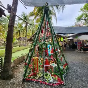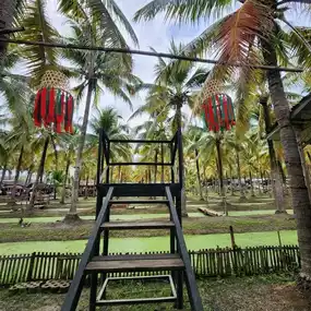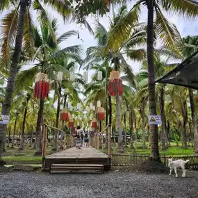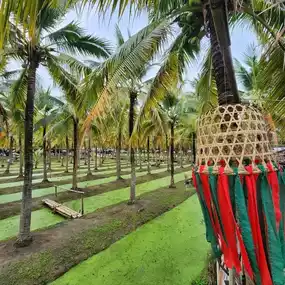 In the middle of a coconut garden, decorated