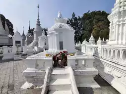 Wat Suan Dok was built by Phraya Kuena in 1914. It was originally called Wat Buppharam, which means the temple of the flower garden. People usually call it Wat Suan Dok. Inside Wat Suan Dok, there is the King of Chiang Mai's shrine, a national historical site, as well as the shrine containing the ashes of Chao Noi Suk Kasem, the legend of unrequited love, the story of Ma Mia. People come to pay homage and ask for blessings from him about love.