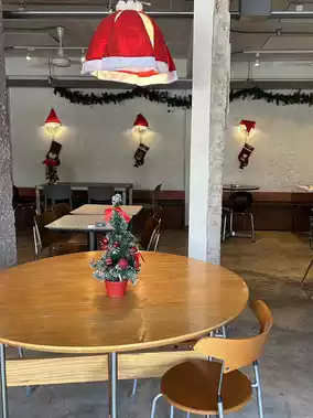🎄 This shop is full of every festival again. The most cozy cafe in Chiang Mai. The bright orange coffee shop is decorated very cutely. It is near the city center. There is a parking lot for customers. Drinks for those with a sweet tooth, both coffee and soda. The shop is located in Santitham area.