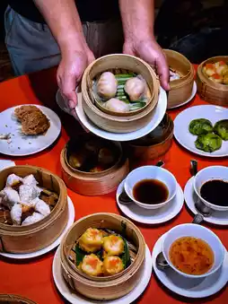 Dim sum is handmade and steamed upon order