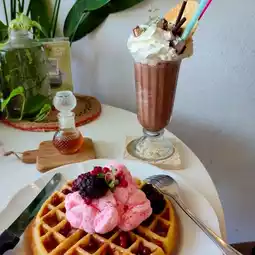 •There are many types of cute drinks, and they also have waffles and meal menus.