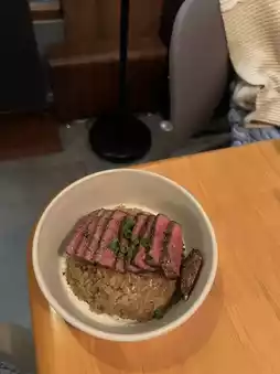 If anyone is thinking of going to Chiang Mai, I would like to recommend one of the restaurants that is beautiful like a cafe, homey style, with only a few tables. This is "Uncle Kani", a one-story homey style restaurant that does not have many menus, but I must say that each menu is really delicious. It is located in Su Thep Subdistrict, Chiang Mai. The interior of the shop is decorated cutely, homey, warm, Korean style like a small cafe. There is 1 cat to welcome customers. The food that should be ordered is fried rice with steak fat and pickled eggs. It is very delicious. You should definitely order it. Japanese fried rice with fragrant beef fat, eaten with pickled eggs, very delicious. To finish with dessert, it is Muscat grape cheesecake. It is a perfect meal. P.S. I secretly ordered another plate of fried rice with beef fat. It is really delicious. The front of the shop is also very beautiful for taking pictures. Please come. The food takes a little while because the owners cook it themselves. But the food is really excellent. It is worth the wait. I recommend booking a table before going because it fills up very quickly. I confirm the deliciousness 10/10. 🕰️Opening hours: The shop opens from 11:00 AM to 9:00 PM. The kitchen closes at 7:45 PM.