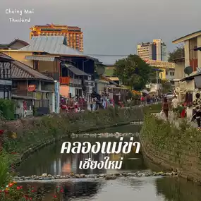 Mae Kha Canal, a new tourist attraction in Chiang Mai Province, a riverside tourist spot that offers a relaxing atmosphere. A destination not to be missed is Mae Kha Canal. If you visit Chiang Mai, you must stop by at least once. If you come in the late afternoon or evening when the sun sets, you will see beautiful light, perfect for taking pictures. You can also walk and find snacks along the way. I personally like the melons here. They are very sweet and delicious.