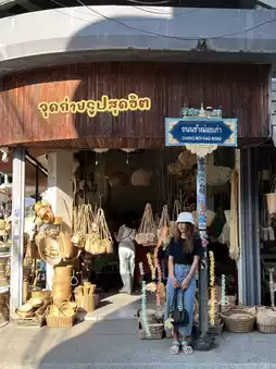 Honey Rattan, Chang Moi is a shop selling handicrafts such as rattan and bamboo as decorations, bags, and hats. There are both Thai and foreign tourists visiting here. And next door, there is a coffee shop called Brewginning. People come to drink coffee and take pictures there.