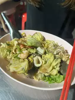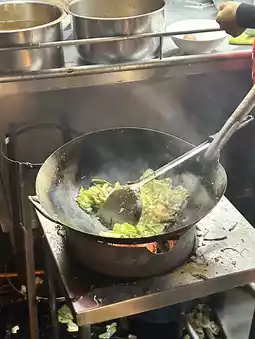 The concept of the restaurant is crispy vegetables with a fragrant pan aroma. Prices start at only 59 baht. It's cheap and they give a lot.