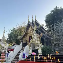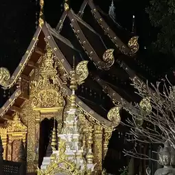 The highlight of Wat Pa Daet is the Wihan Luang Lai Kham, built in Lanna architecture, enshrining the main statue, Luang Pho Ta Wan. There is also the statue of Thao Wessuwan for you to worship in the temple. And what cannot be left unmentioned is the Wihan Phra Phikanet, enshrining the famous Ganesha statue named Uttarasri Kanapati, which means the one who grants success in the right way. The statue of Ganesha is made of blackened bronze, has four arms, holds a vajra, a noose, tusks, and a bowl of sweets. Most people like to come to perform a ceremony to ask for blessings from Ganesha. I must say that you have to book your offerings a month in advance. There will be a Brahmin Perform the fire aarti ceremony and anoint the forehead